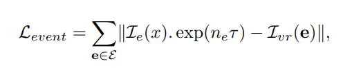 기본 NeRF의 방식을 그대로 사용해서 각 event에 대해 rendering된 color 와 event location (픽셀좌표 (x, y))에서의 RGB color 을 비교하여 loss term으로 삼고 RGB frame과 event 사이의 event 개수들을 고려한다.
