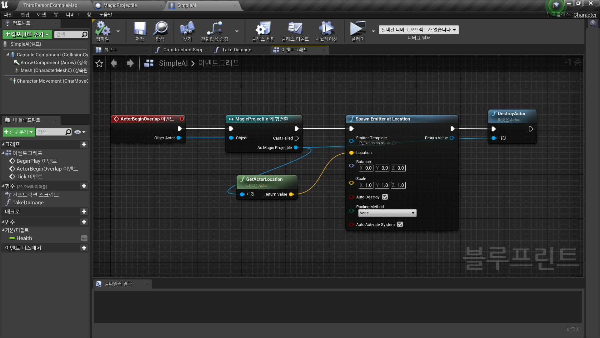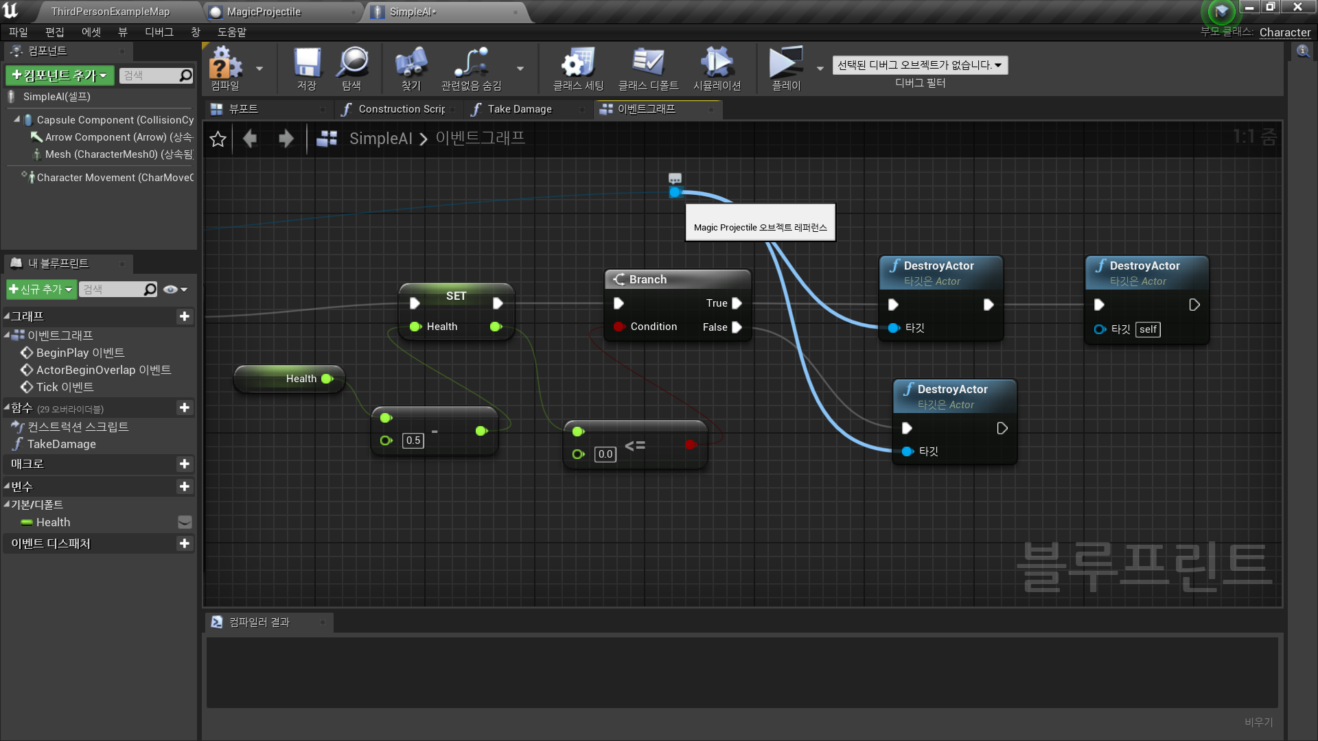 1. How we can make our recently created magic projectile damage our AI character.