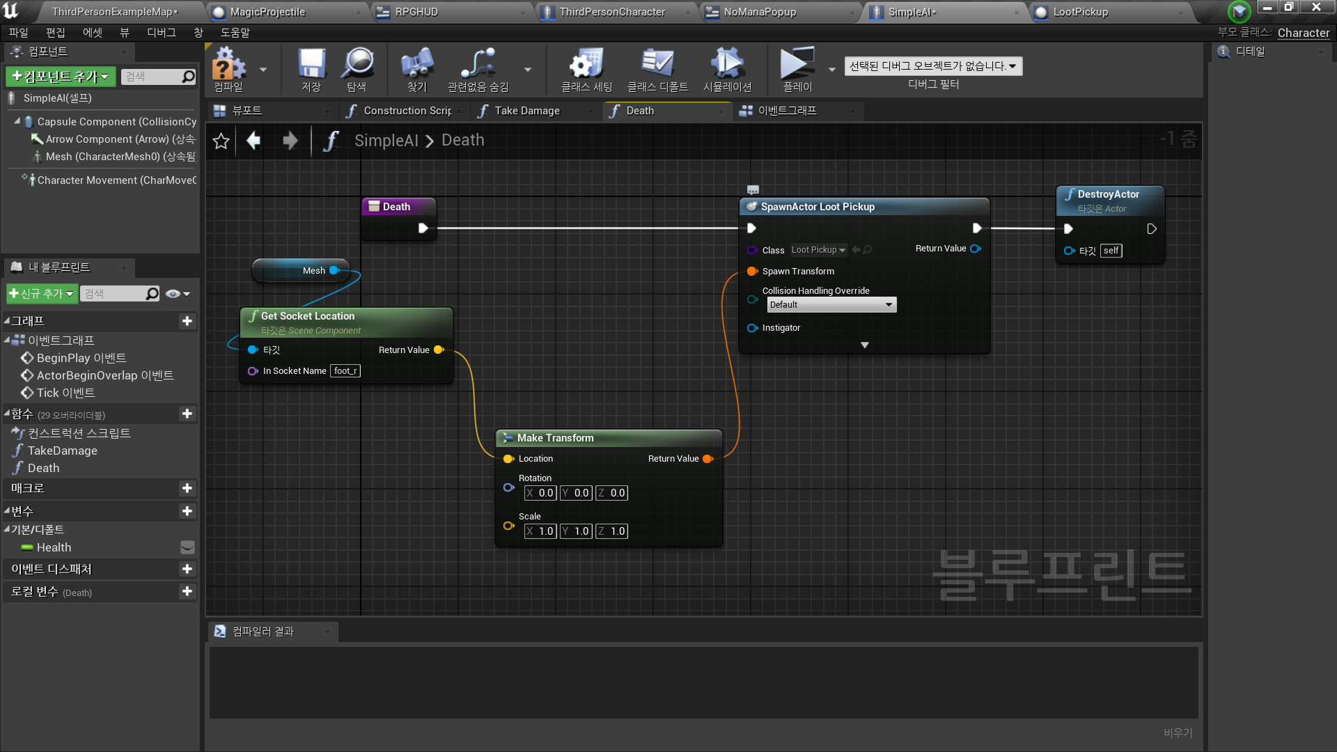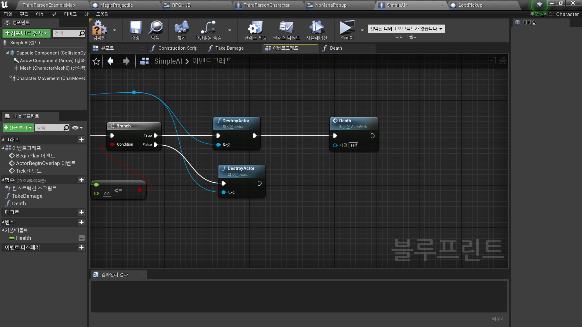 콘텐츠 브라우저에서 선택된 에셋 사용In Character Blueprint <SimpleAI>