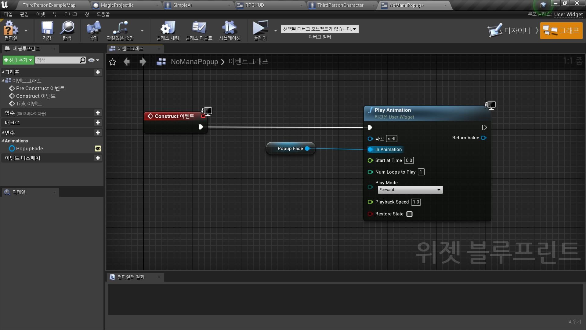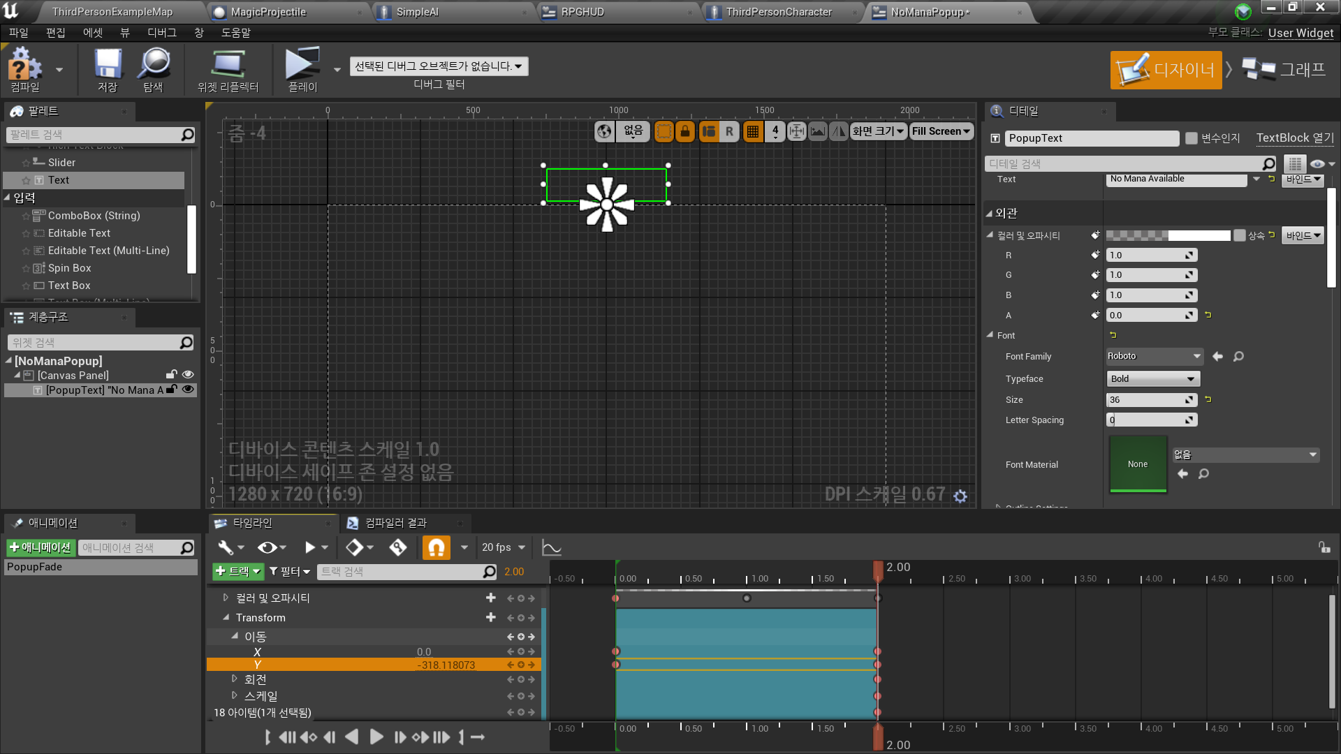 - New Widget Blueprint <NoManaPopup>