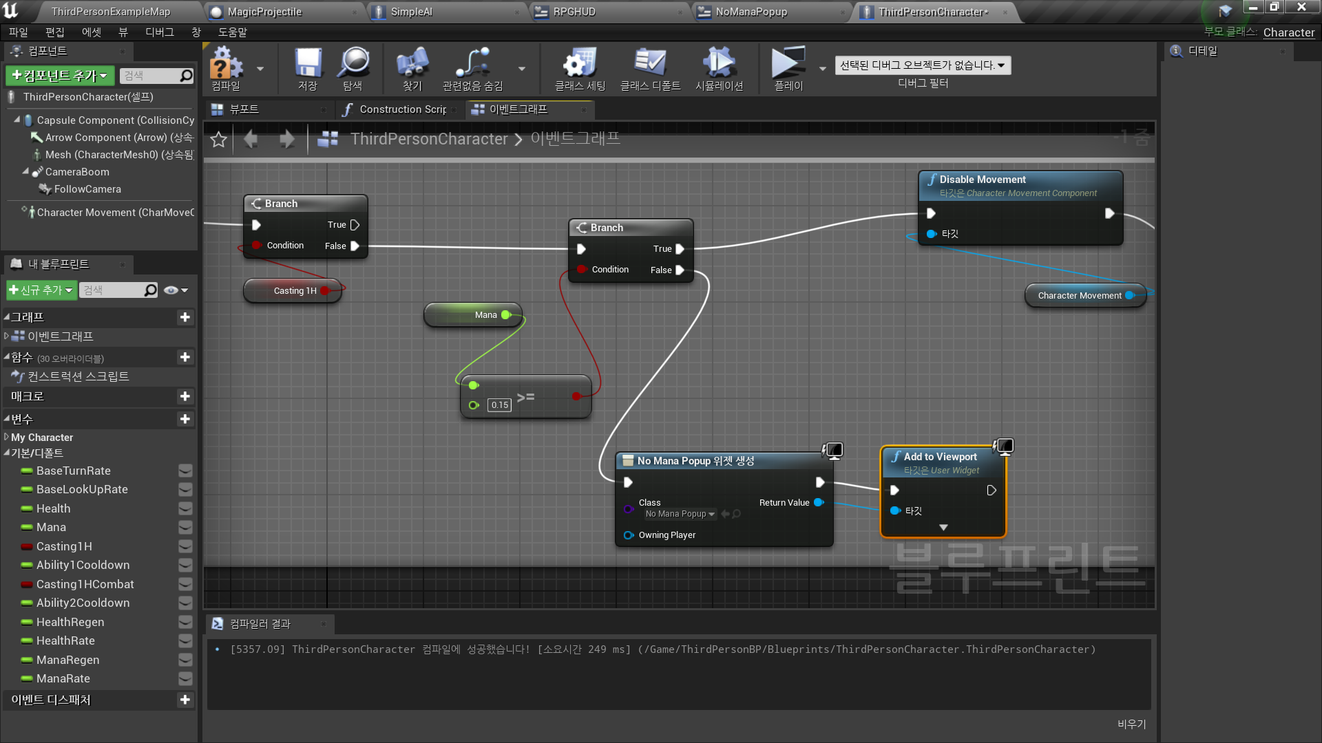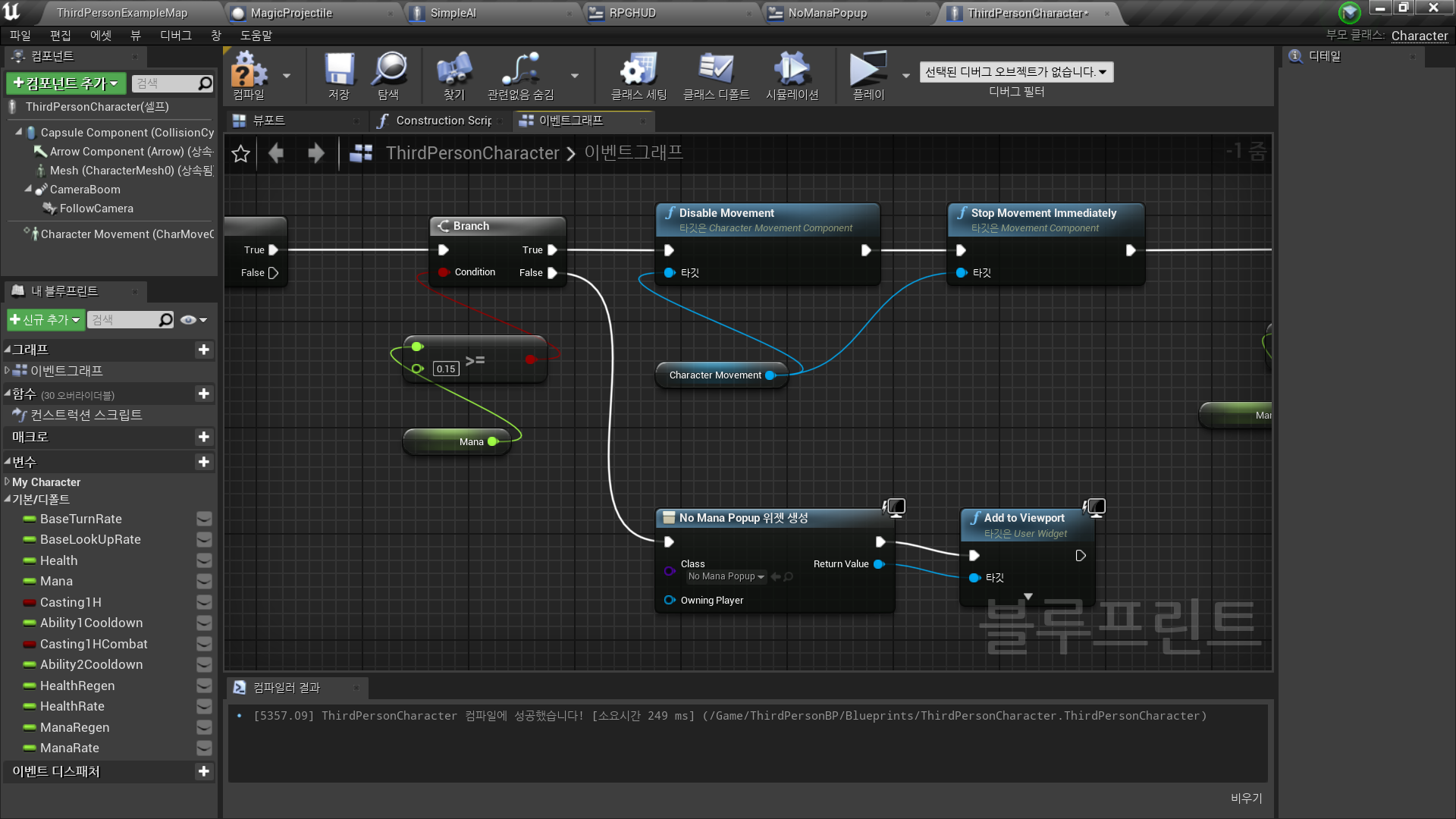 Branch(Mana>=0.15?) False인 경우 → 팝업 띄우기