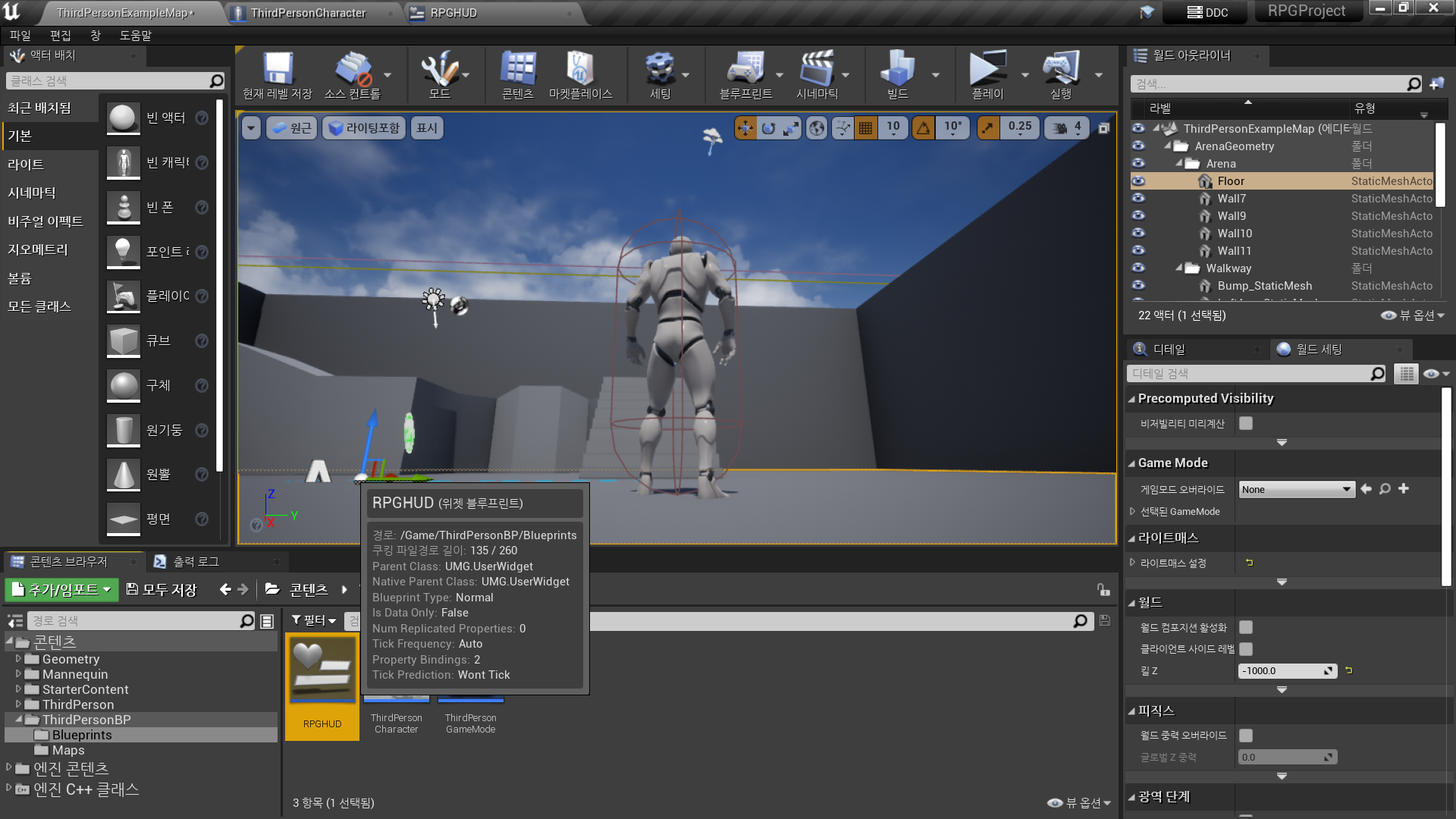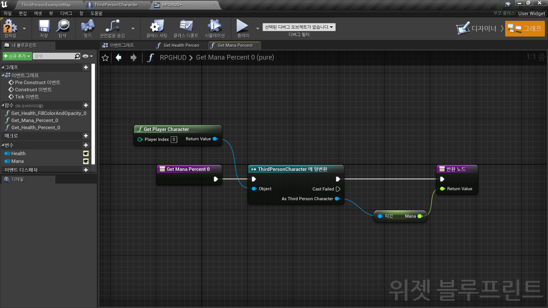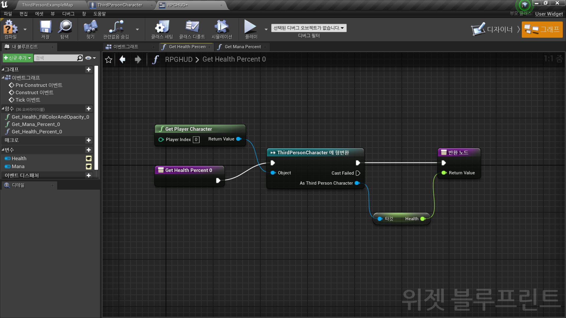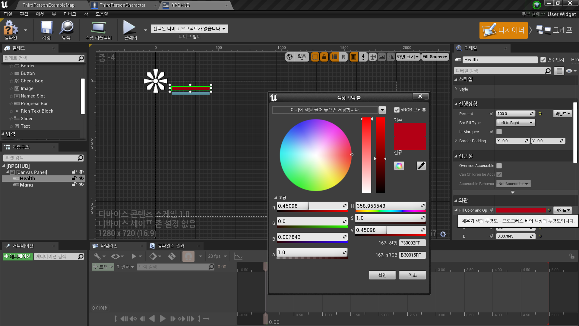 유저 인터페이스 → 위젯 블루프린트 <RPGHUD>