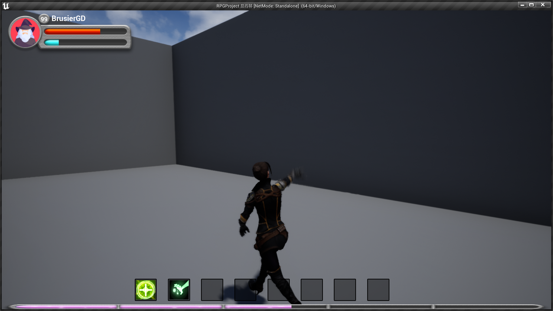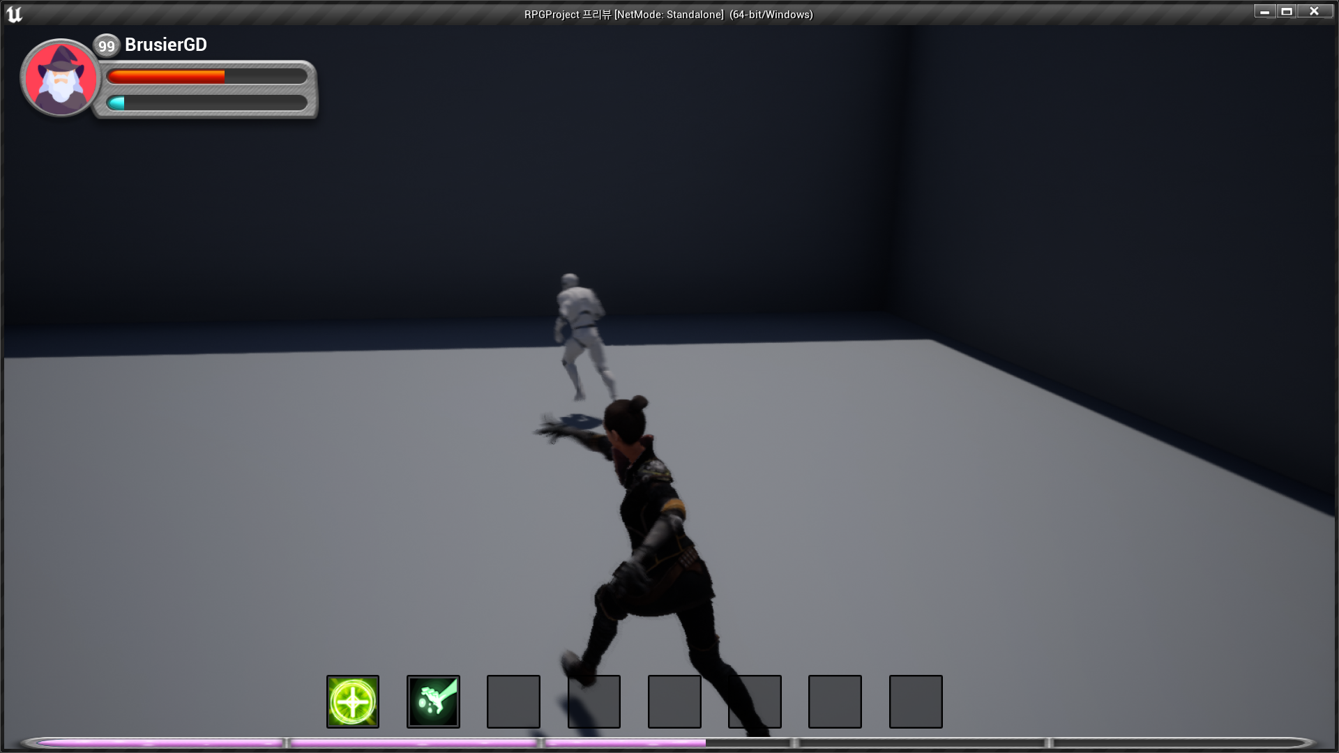 2. We do this by mixing the bottom half of the walk/run blendspace and the top half of the spell casting animations.