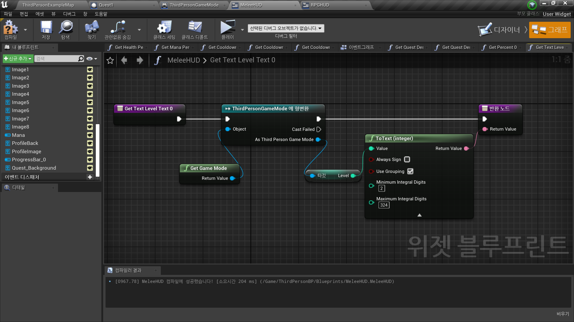- In Widget Blueprint <MeleeHUD/RPGHUD>