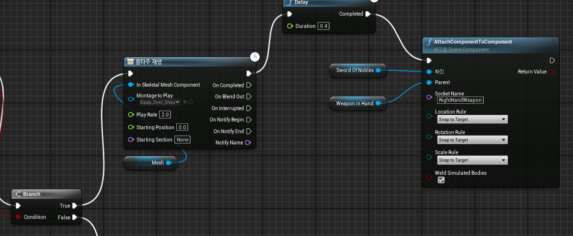 - Add Component: <WeaponInHand> → Skeletal Mesh <SwordOfNobles>