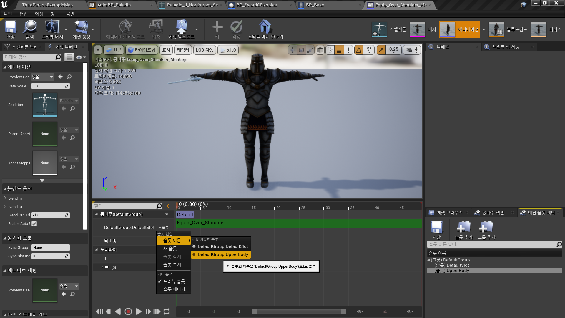 - 슬롯 추가 및 설정: UpperBody