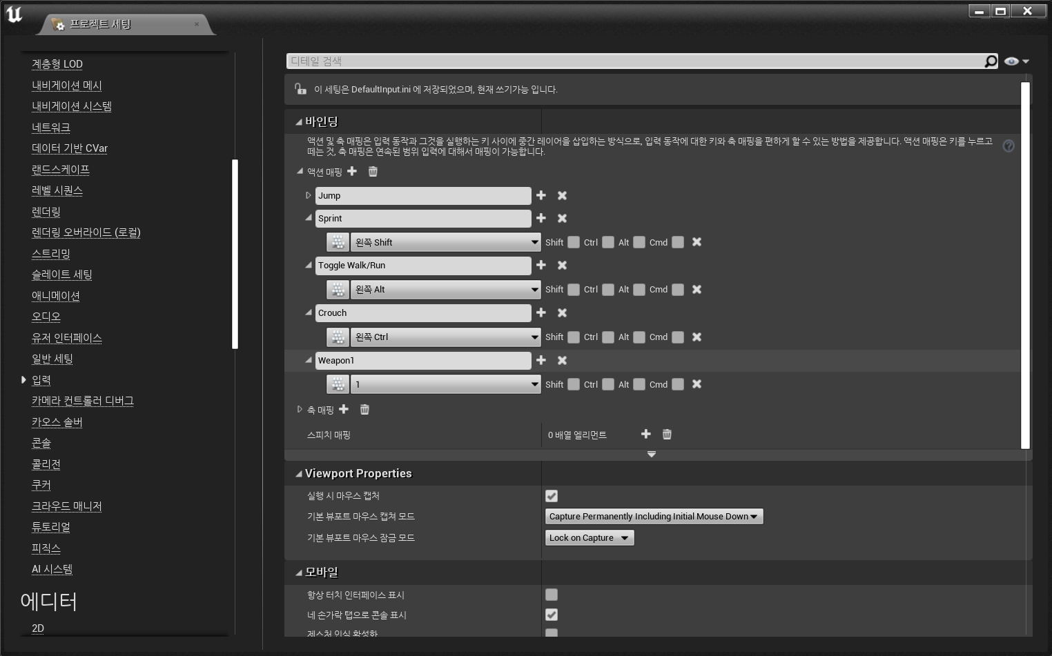 In Project Settings - Inputs