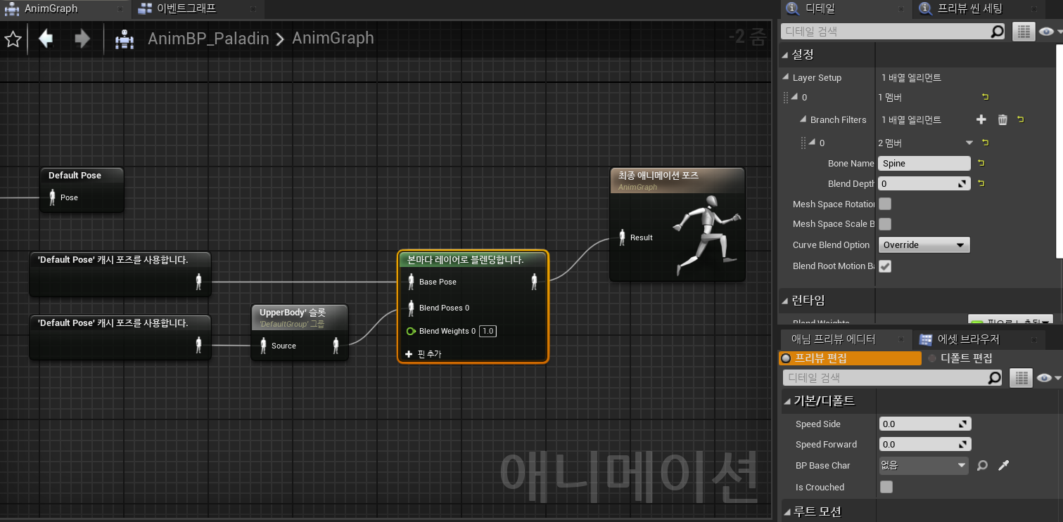 - Blend Poses0: 'Default Group'그룹의 'UpperBody' 슬롯