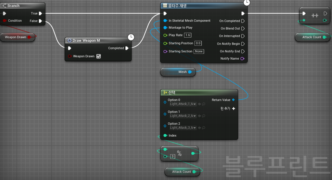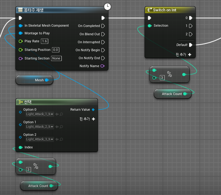 현재 몇 번째 LightAttack인지 나타내는 변수AttackCount를 3으로 나눈 나머지 값을 Index로 사용