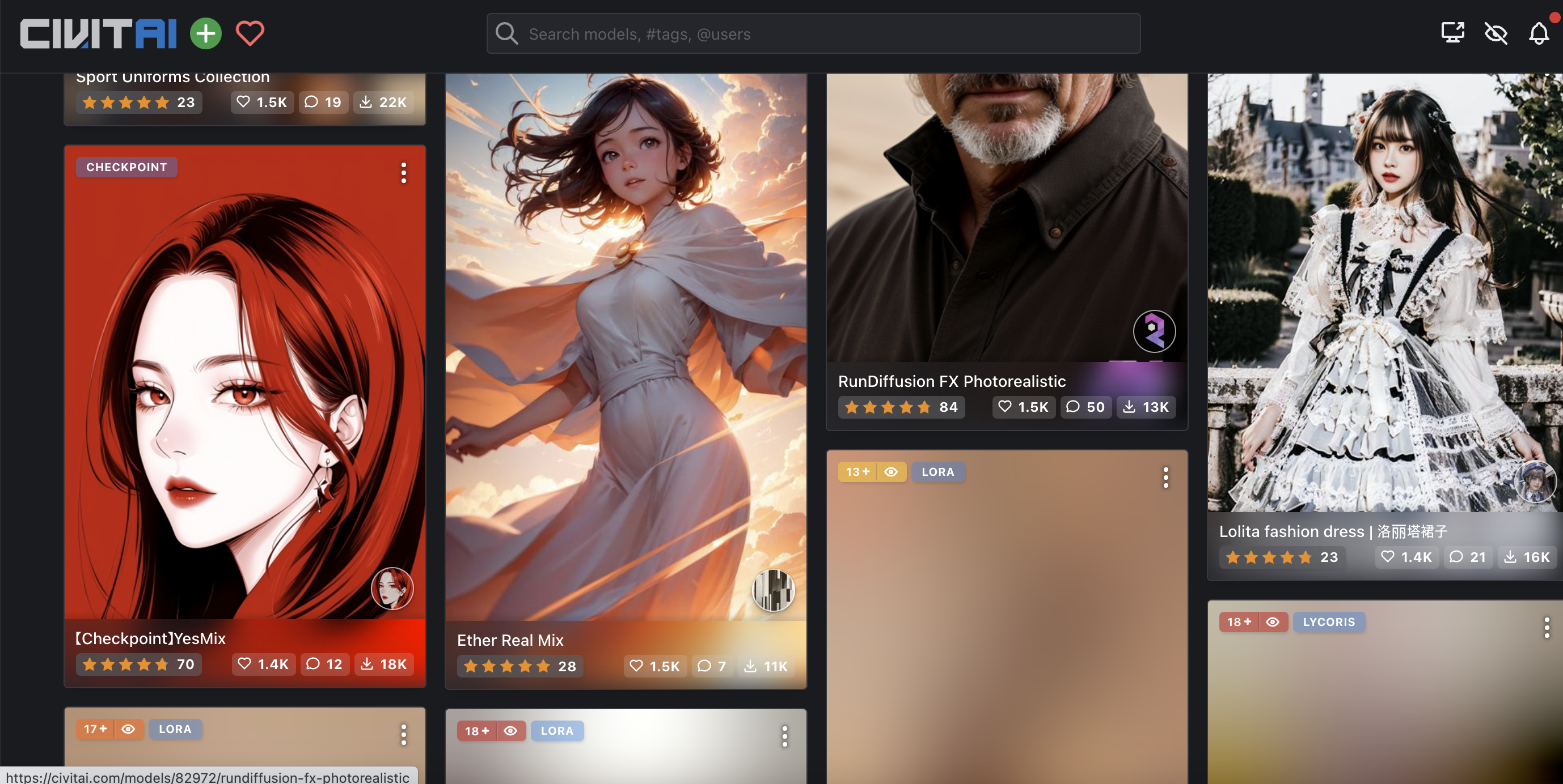 CivitAI는 이미지 생성 관련 정보들과 이미지들을 공유하는 커뮤니티라고 이해하시면 되겠습니다.
