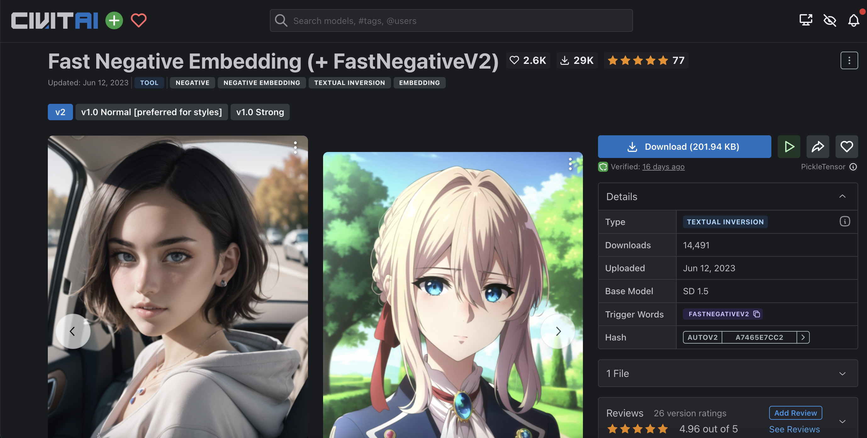 네거티브 프롬프트를 보니 FastNegativeV2가 사용되었다는 걸 확인했습니다.