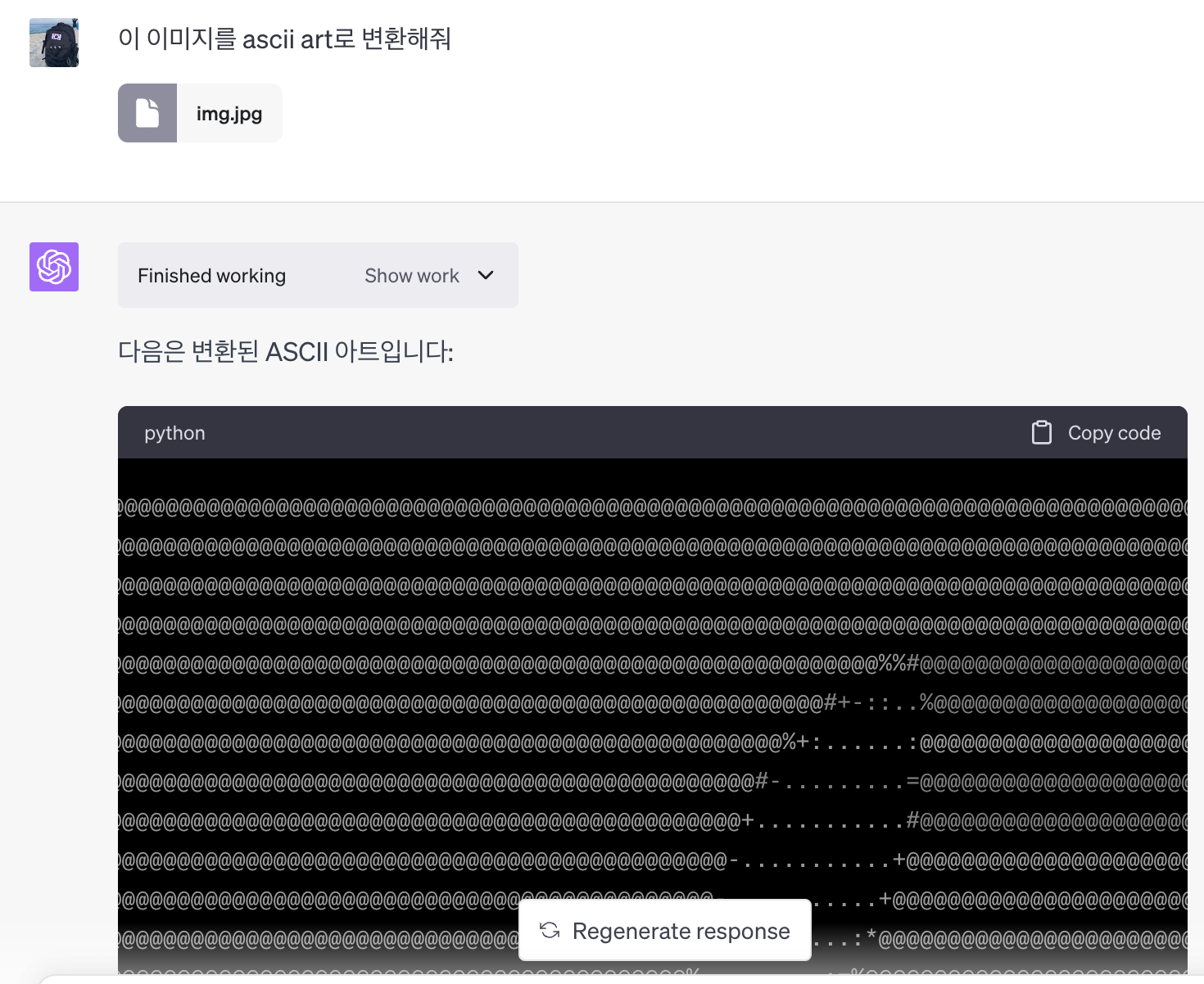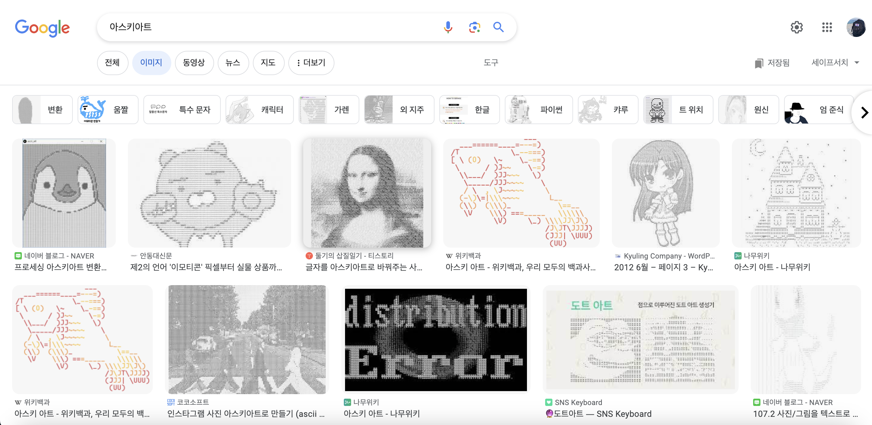 아스키 아트는 이미지나 텍스트를 아스키코드로 변환한 것을 말합니다.