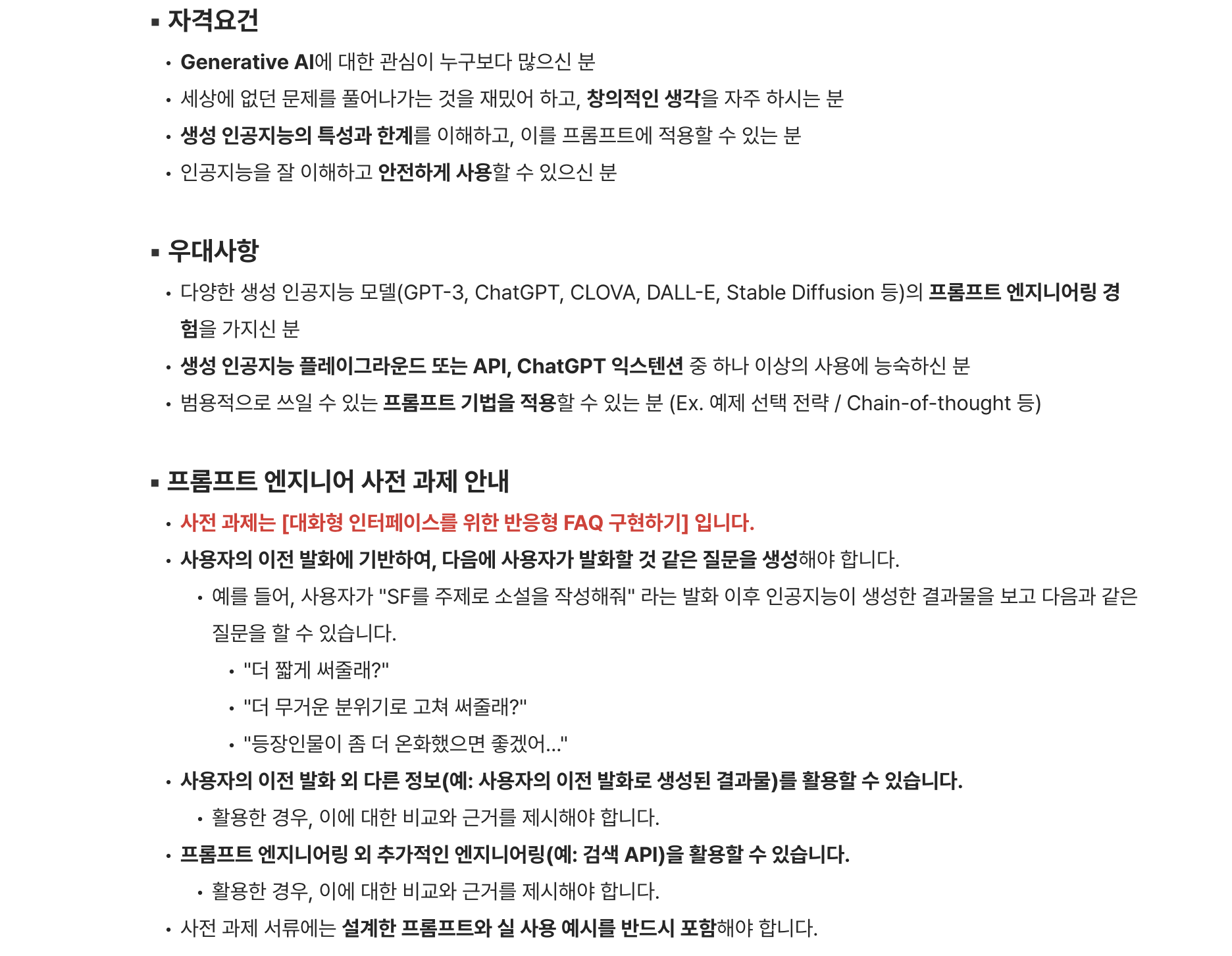 뤼튼에서는 프롬프트 자체를 연구하고 그 사례를 정리하는 것을 원하는 것 같아보여 고민이 되는 부분입니다.