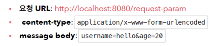 - 메시지 바디에 쿼리 파라미터 형식으로 데이터를 전달한다(key=value)