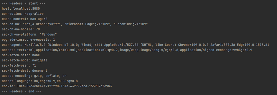 System.out.println("request.getServerName() = " + request.getServerName()); //Host 헤더