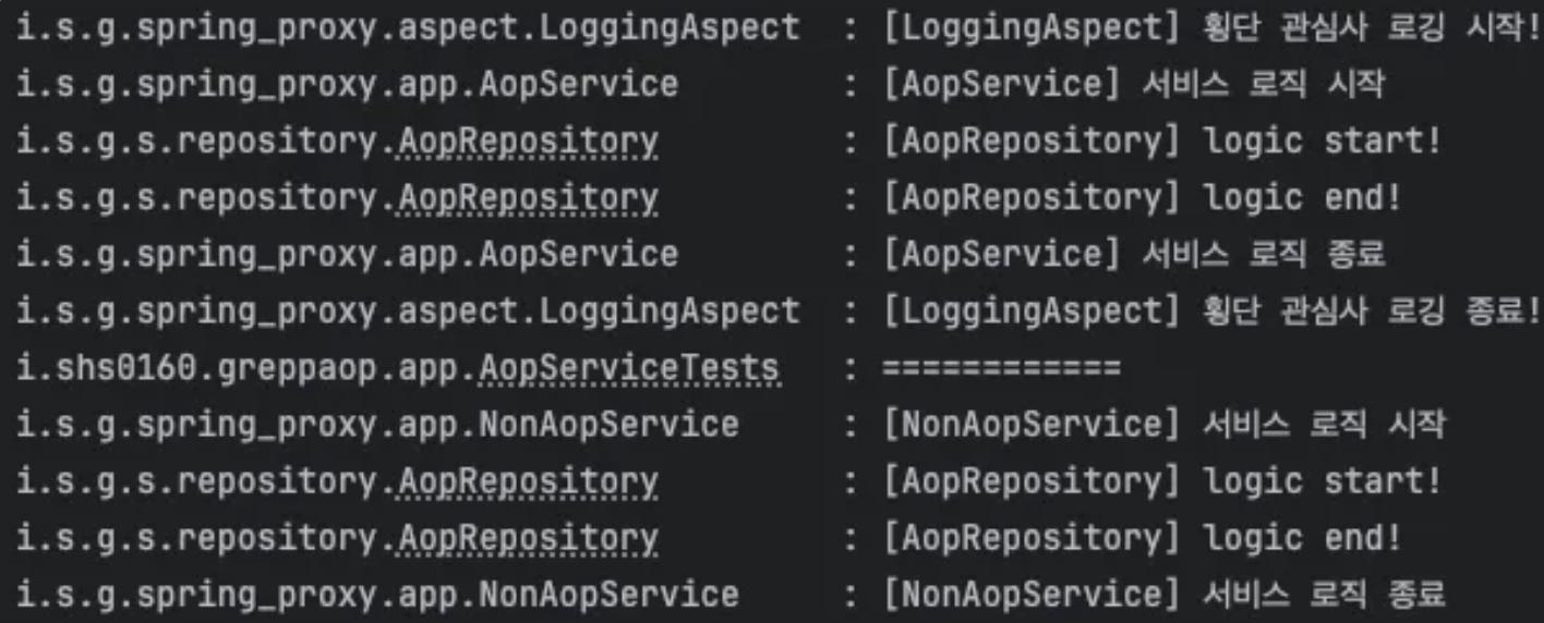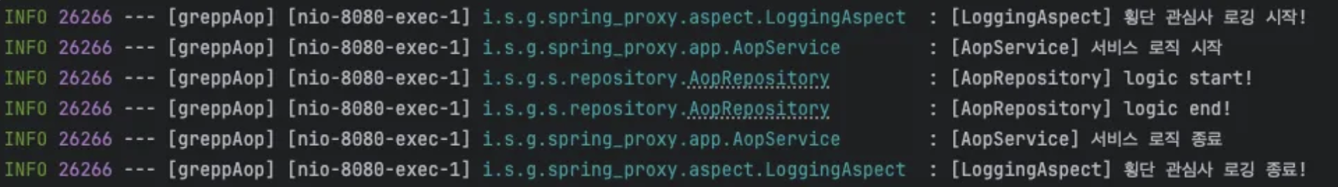 log.info("[LoggingAspect] 횡단 관심사 로깅 시작!");