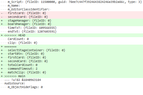 HEAD 에서는 오브젝트의 속성이 변경되었고,나는 곧바로 Git이 생성한 충돌 표시 라인들을 제거하고 양쪽의 코드를 모두 남겼다.