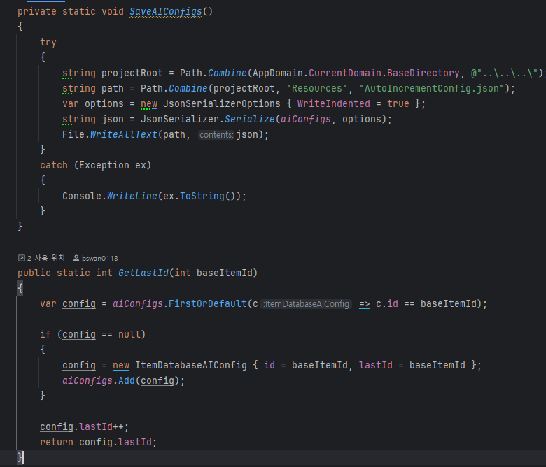 GetLastId가 호출되는곳이 Item클래스 상속자들의 Clone메서드내부이니 그때마다 SaveAIConfig를 호출하면 간단히 확보되는 문제인것이다.