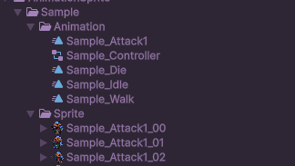 자동으로 완성된 애니메이션, 스프라이트, 프리팹이 완성된다!