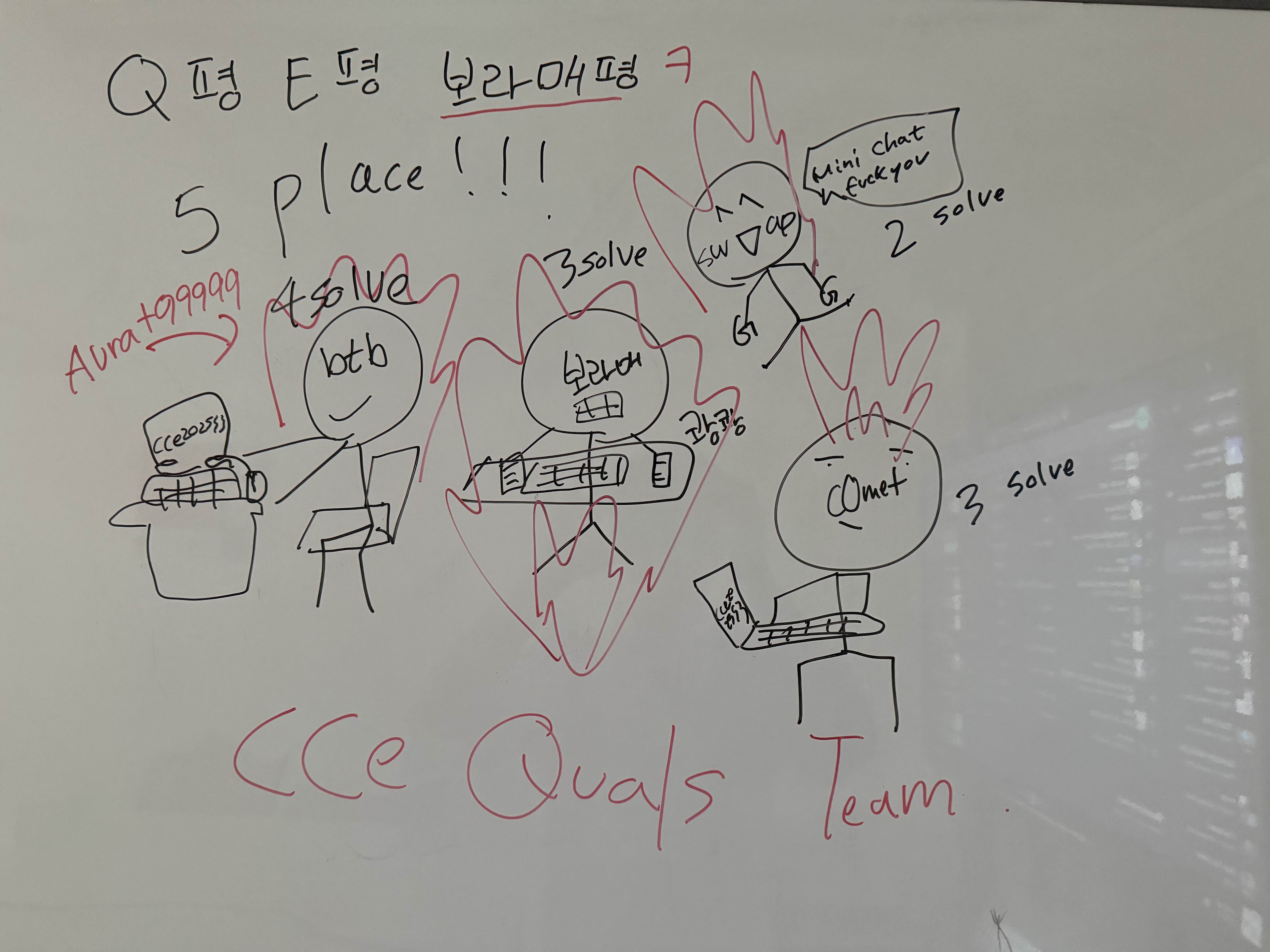 처음으로 cce를 참가했었는데 팀 빌딩되고 한 달 전부터 본선 못가면 어쩌지 싶으면서 걱정을 많이 했었습니다 그래도 모두가 열심히 해준 덕분에 7등으로 마무리해서 본선에 갈 수 있었네요