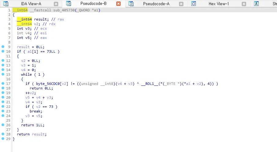 문제가 디버깅이 필수였는데 디버깅을 정말 못하기도하고 리버싱은 웬만하면 로직을 전부 다 구현해서 푸는 스타일입니다