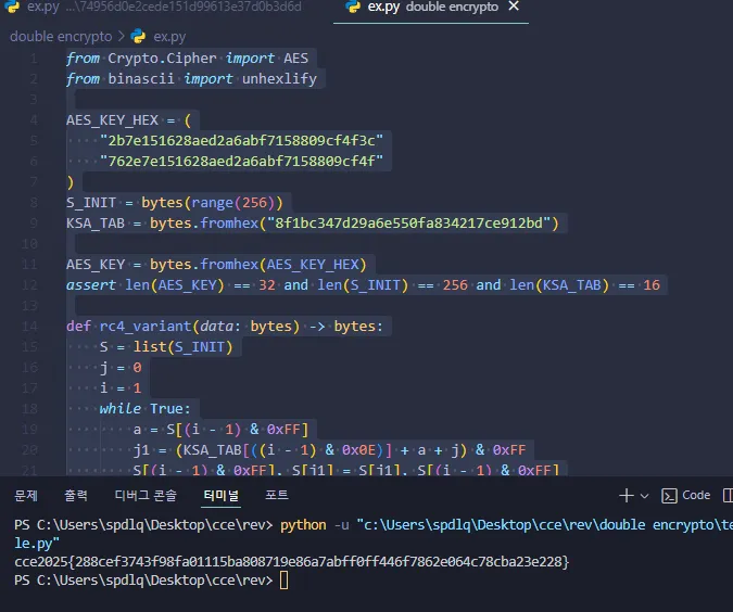정말 간단해서 앞으로 못 풀었던 디버깅 문제들을 하나씩 올클해보려 합니다. 결국엔 값을 찾아서 성공적으로 복호화 코드가 작동했네요