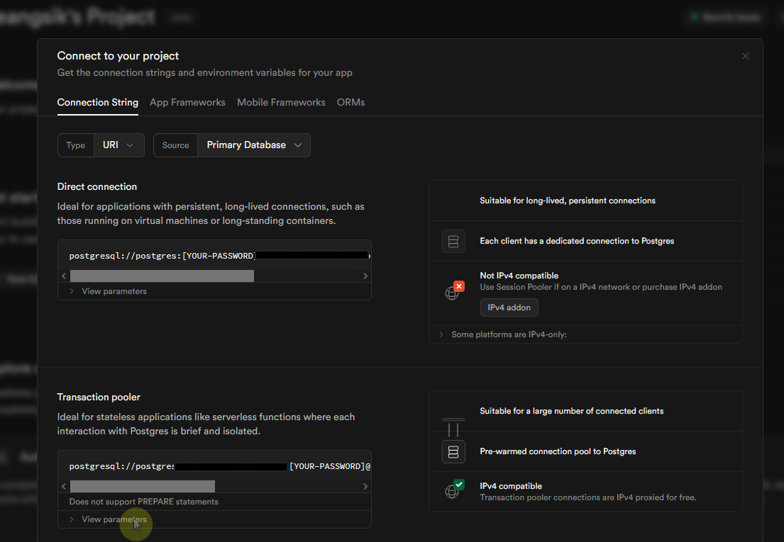 supabase를 일반 db툴로 접속을 해보고 싶었다.