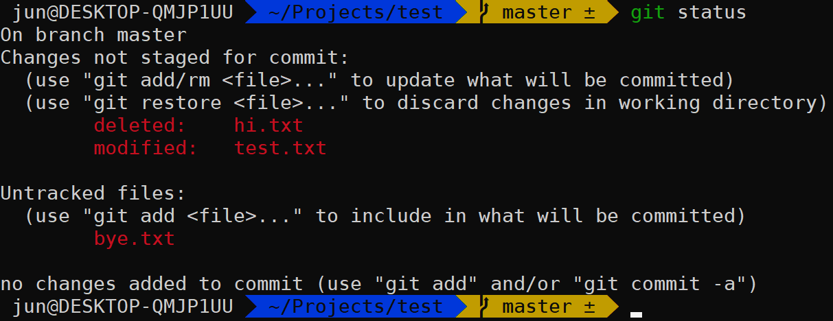 Git은 현재 저장소에 대한 모든 변경사항을 추적하고 있지만, 아직 프로젝트의 파일을 관리하고 있지 않는 상태다.