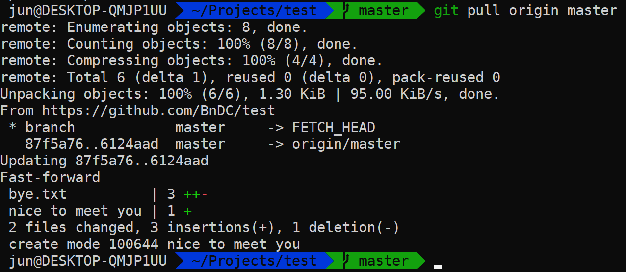 push와 반대로 github 저장소에 올려진 파일과 수정이력을 local에 받아오는 명령어