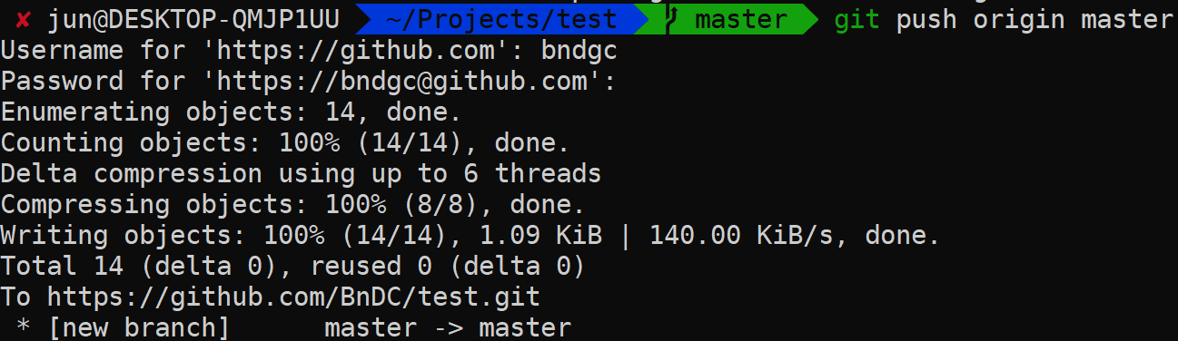 local에 master branch에 있는 파일과 commit들을 origin으로 등록된 github repository에 올리는 명령어