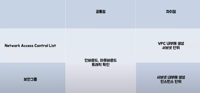 nacl, 보안그룹 공통점과 차이점