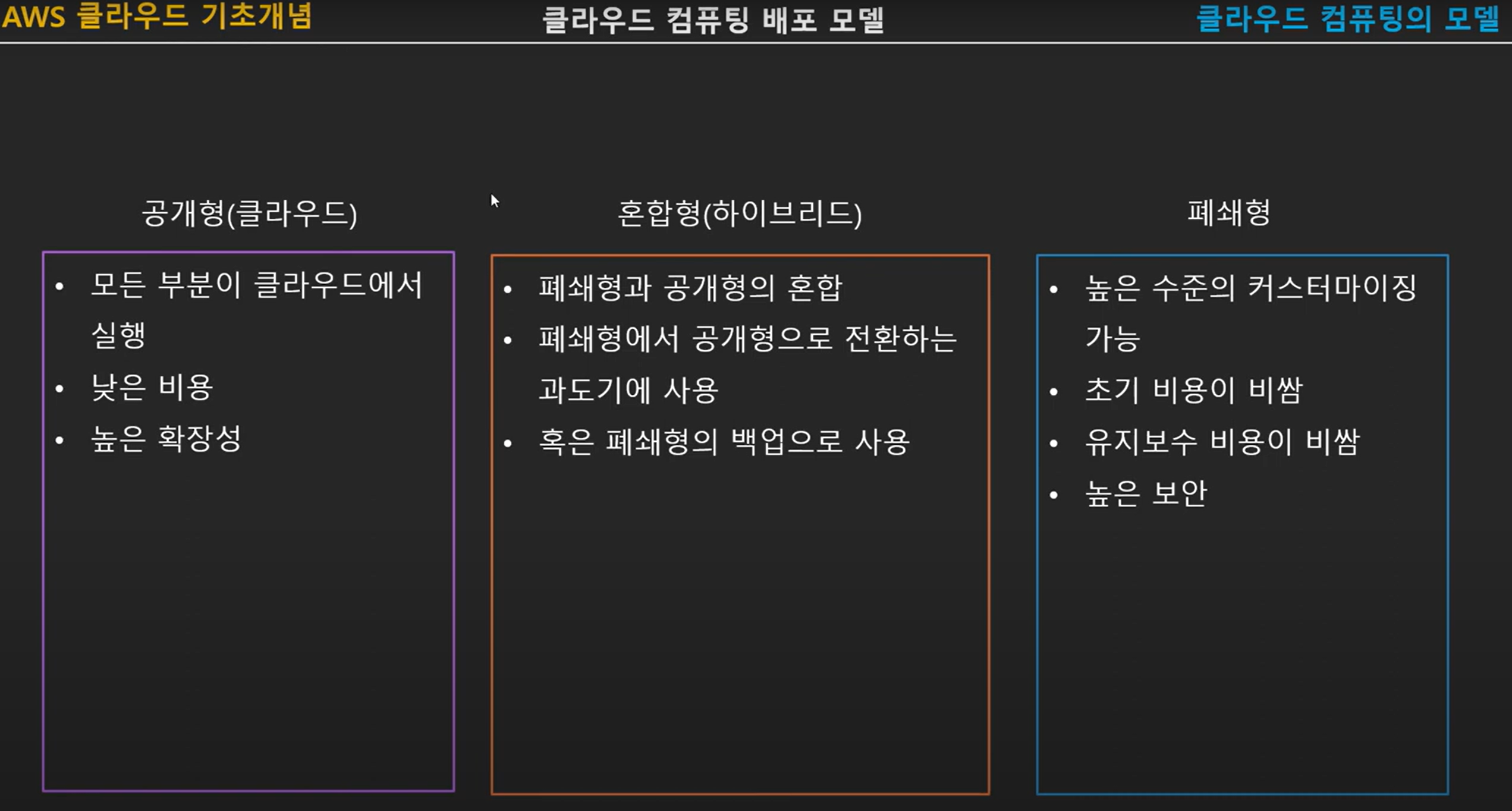 | 가격 정책 | 복잡하지만 다양한 옵션 제공 | 유사한 구조, 하이브리드 클라우드 할인 | 단순하고 투명한 가격 구조, 지속 사용 할인 |