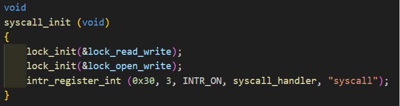 위에서 설명한 open과 write 그리고 read와 write에 synchronization을 활용하기 위해서 syscall_init안에서 lock_read_write와 lock_open_write를 lock_init을 통해 초기화 해주었다.