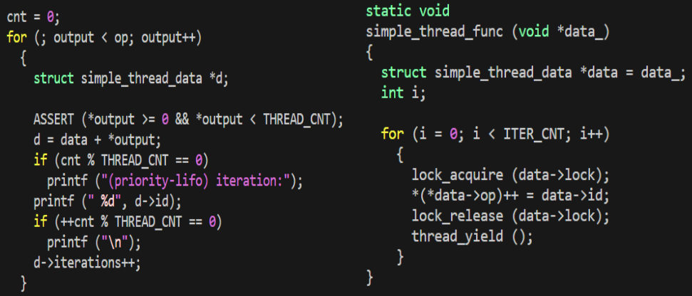 priority-lifo.c 코드 및 priority-lifo 테스트 결과 분석