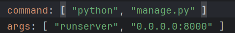 deployment.yaml ์์ ์์ ๊ฐ์ด django์์ ์คํํ๊ฒ๋ ํ์ฌ dev ์น์์ ์ฌ์ฉ์ด ๊ฐ๋ฅํ๊ฒ๋ ๋ฐ๊ฟ์ฃผ์๋ค.(eks ์ฌ์ฉ)