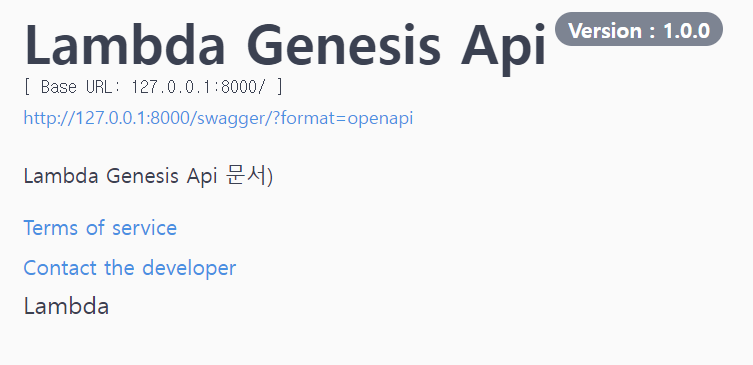description="Lambda Genesis Api ๋ฌธ์)",