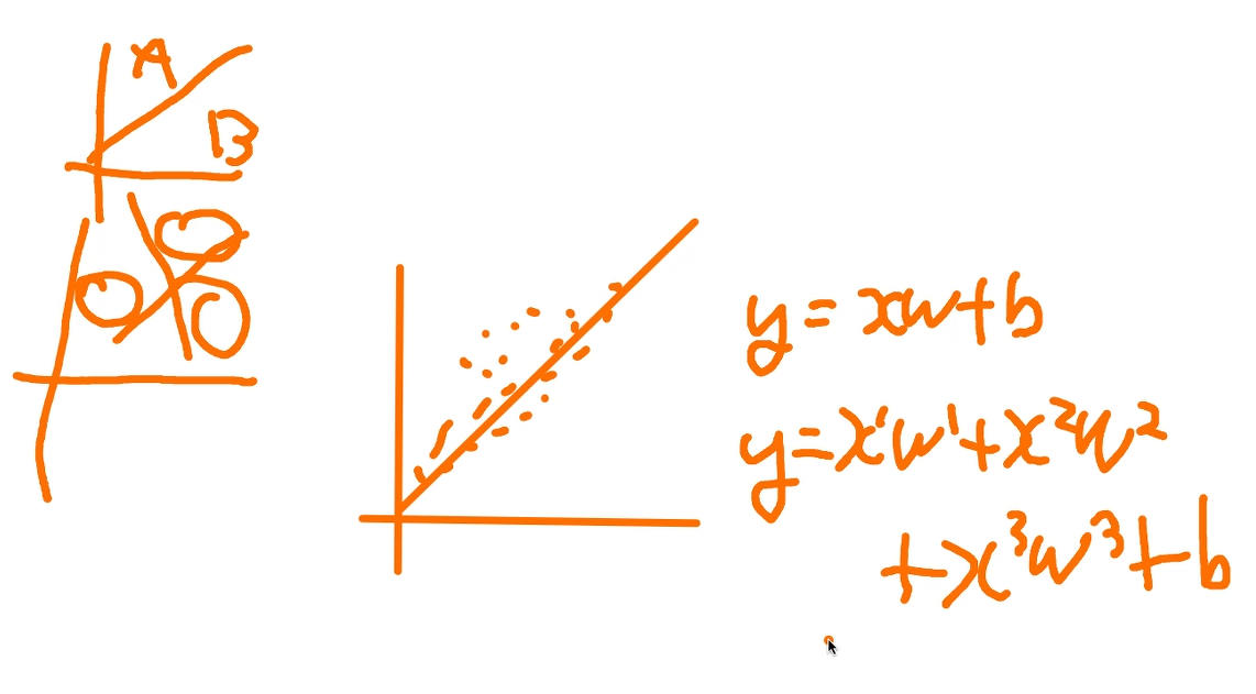 세 가지로 나뉘어지면 기울기 y=xw+b 공식이 안맞는다.