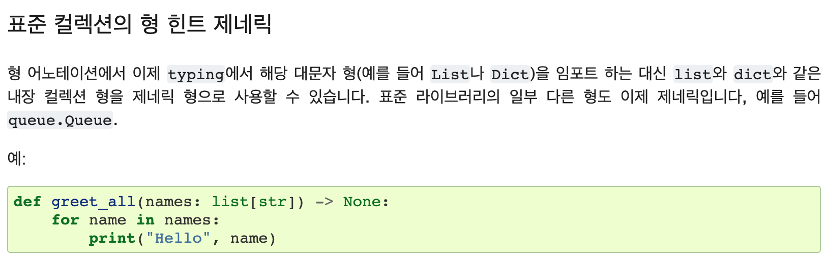 python3.9 부터 내장 컬렉션 형을 제네릭으로 사용 가능함.