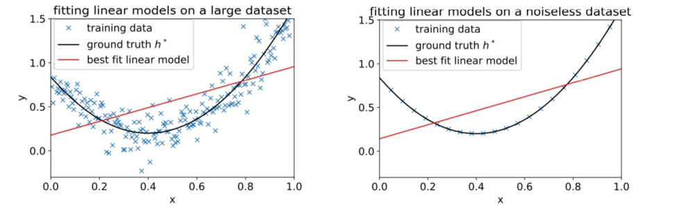 data 자체가 linear하지 않고 이차함수 형태를 띠고 있으므로 linear function으로는 그 구조를 정확히 표현할 수 없는 것이다.