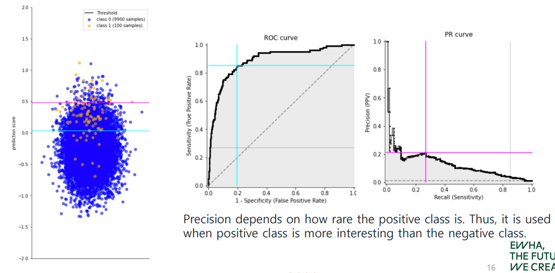 내가 관심 있는 클래스를 맞게 판단하는 것에 치중을 둘 때, 최대한 많은 positive를 고려하고자 할 때 이용!