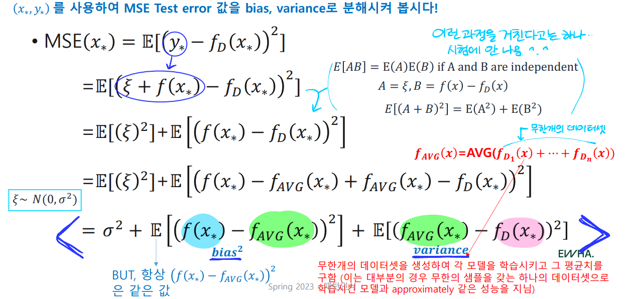 이때의 test error의 기댓값을 다음과 같이 구한다.