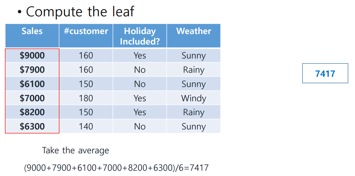 즉, 값의 평균이 곧 모든 sample의 최초의 hypothesis이다.