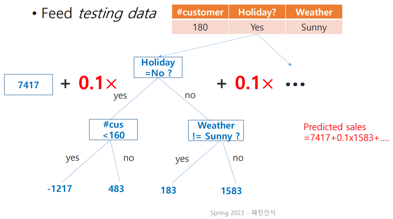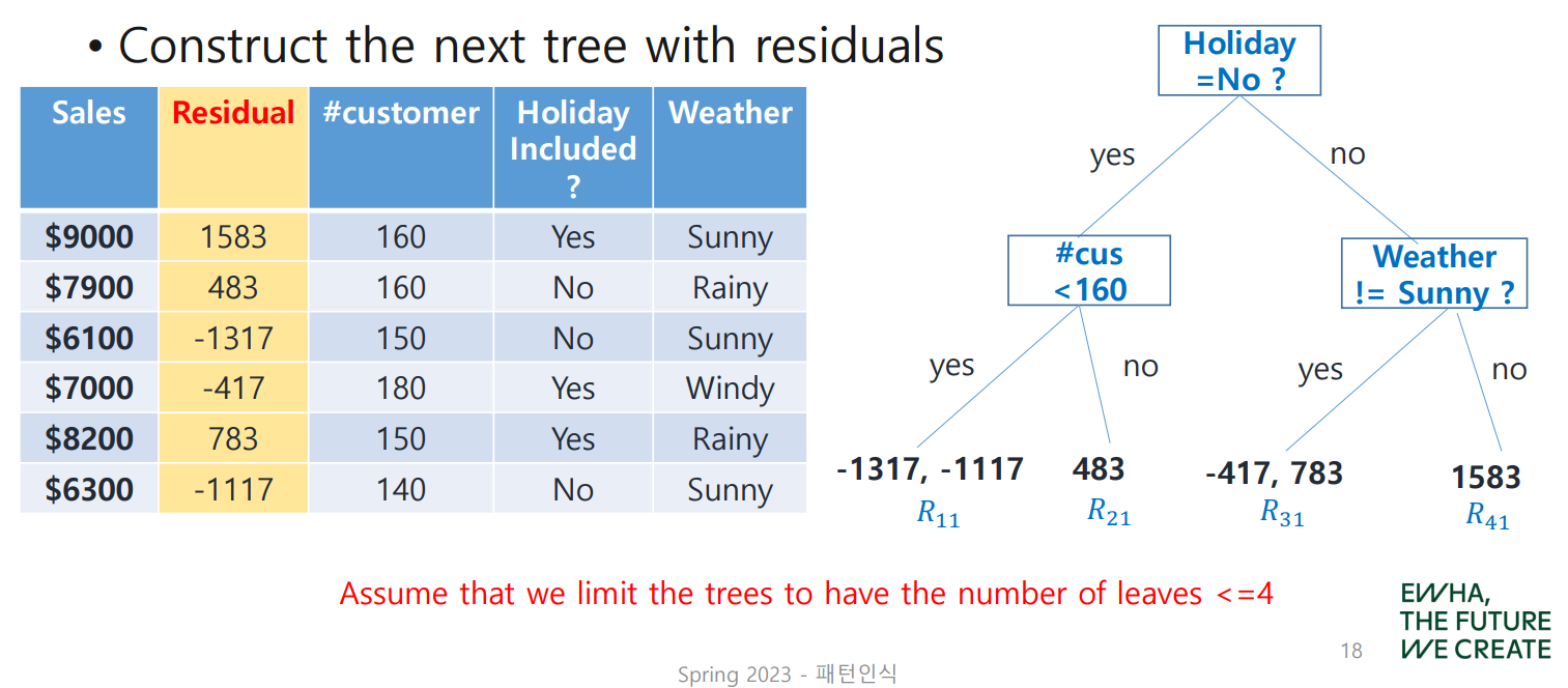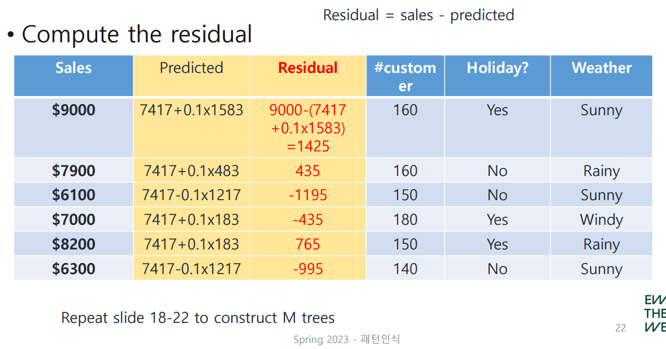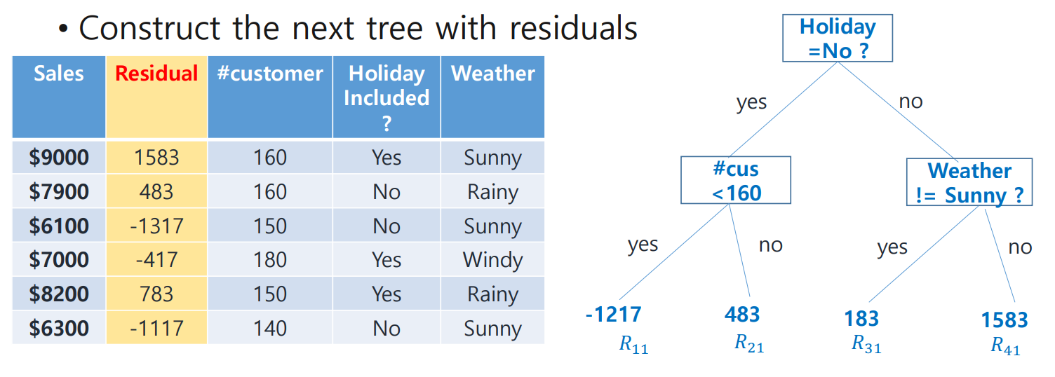 만약 leaf node로 2개 이상의 residual이 나왔다면 평균을 취한다.