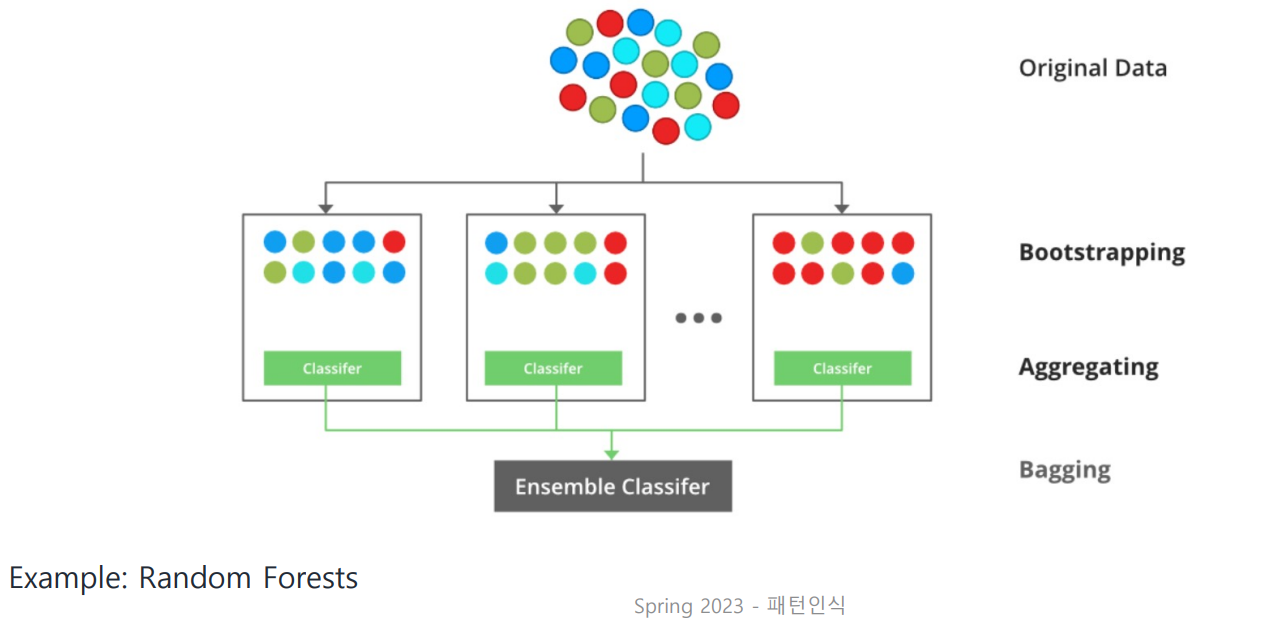 original data를 쪼개 여러 개의 subset(Bootstrap Data)을 만들고 이를 이용해 tree를 만드는데, 이때 tree들의 다양성이 중요!