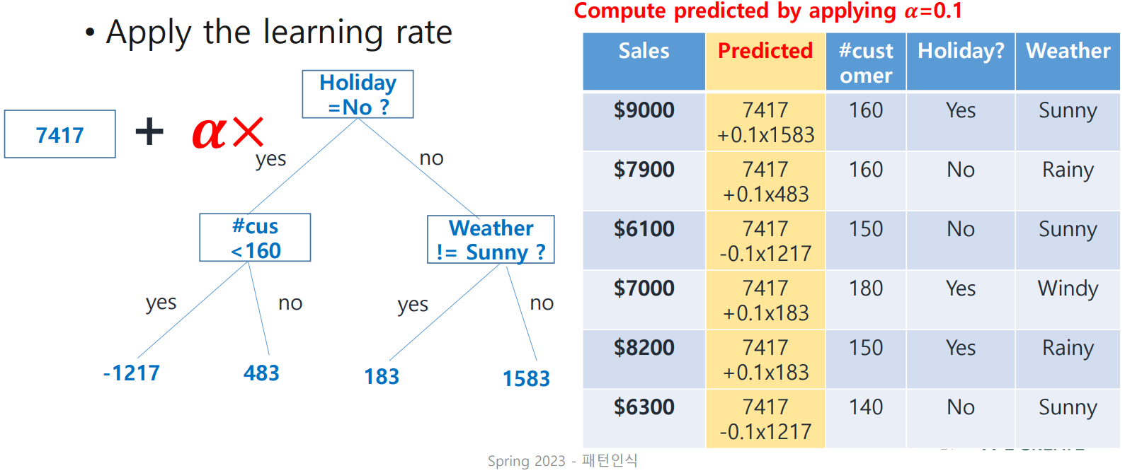 만들어진 tree에 learning rate()를 적용시켜 prediction을 update해 보자.