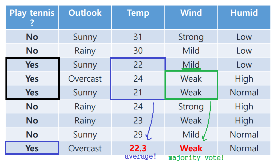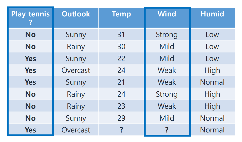이 경우에는 Label(Yes tennis인지, No tennis인지)도 안 주어진 상태!