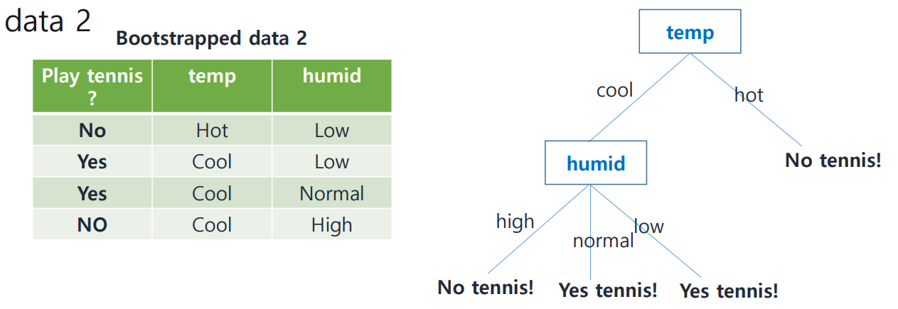 feature, sample을 랜덤하게 골라 Bootstrap Data를 만들었다.