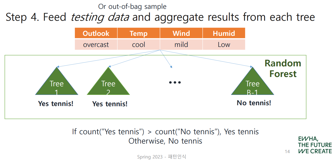 tree가 여러 개다 보니, 어떤 tree에서는 OOB data인 것이 다른 tree에서는 그렇지 않을 수도 있으므로 이를 구분하여 OOB data일 경우에만 testing data로 이용, feed해야 한다.