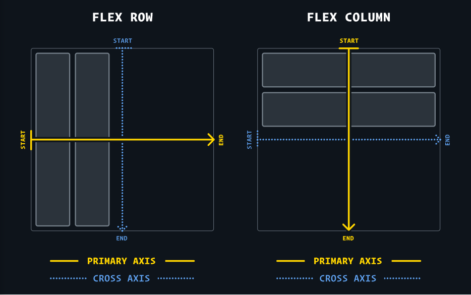Flexbox에서는 수평, 수직으로 아이템들을 배치하기 위한 두 가지의 축이 존재한다.