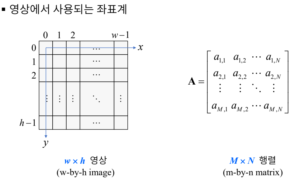 행렬을 표현할때: 세로크기 x 가로크기로 표현함(M x N)